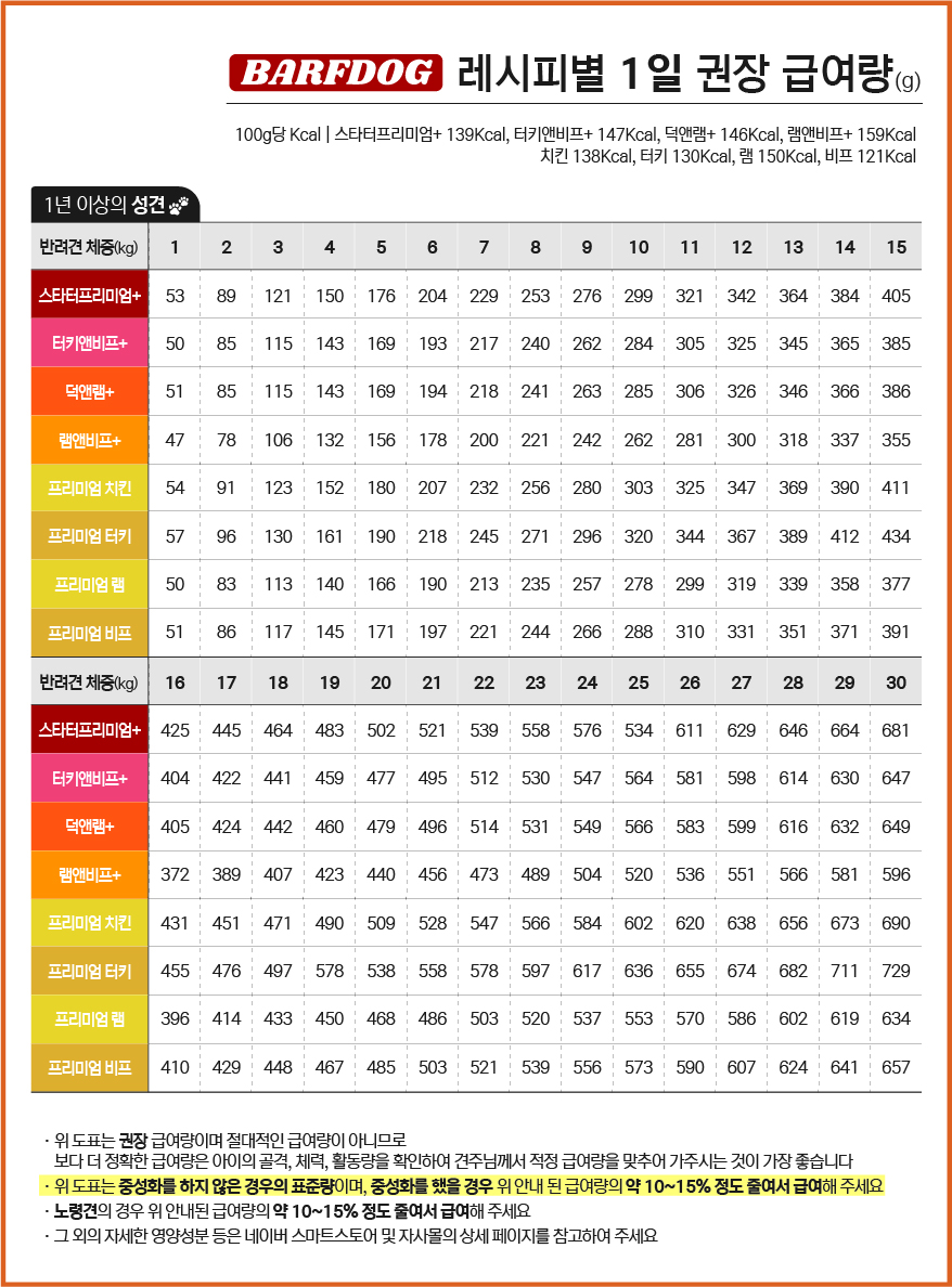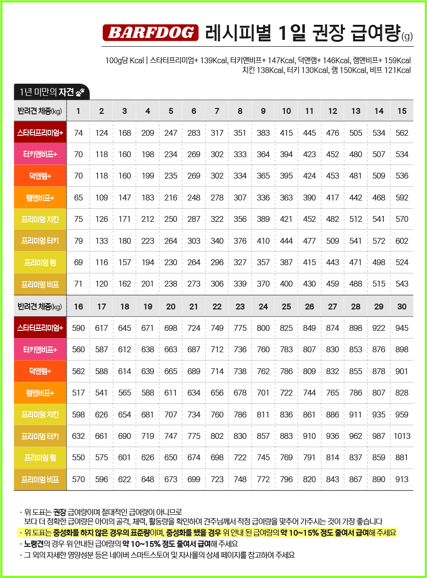 [공지] 바프독 레시피별 1일 권장 급여량 안내
