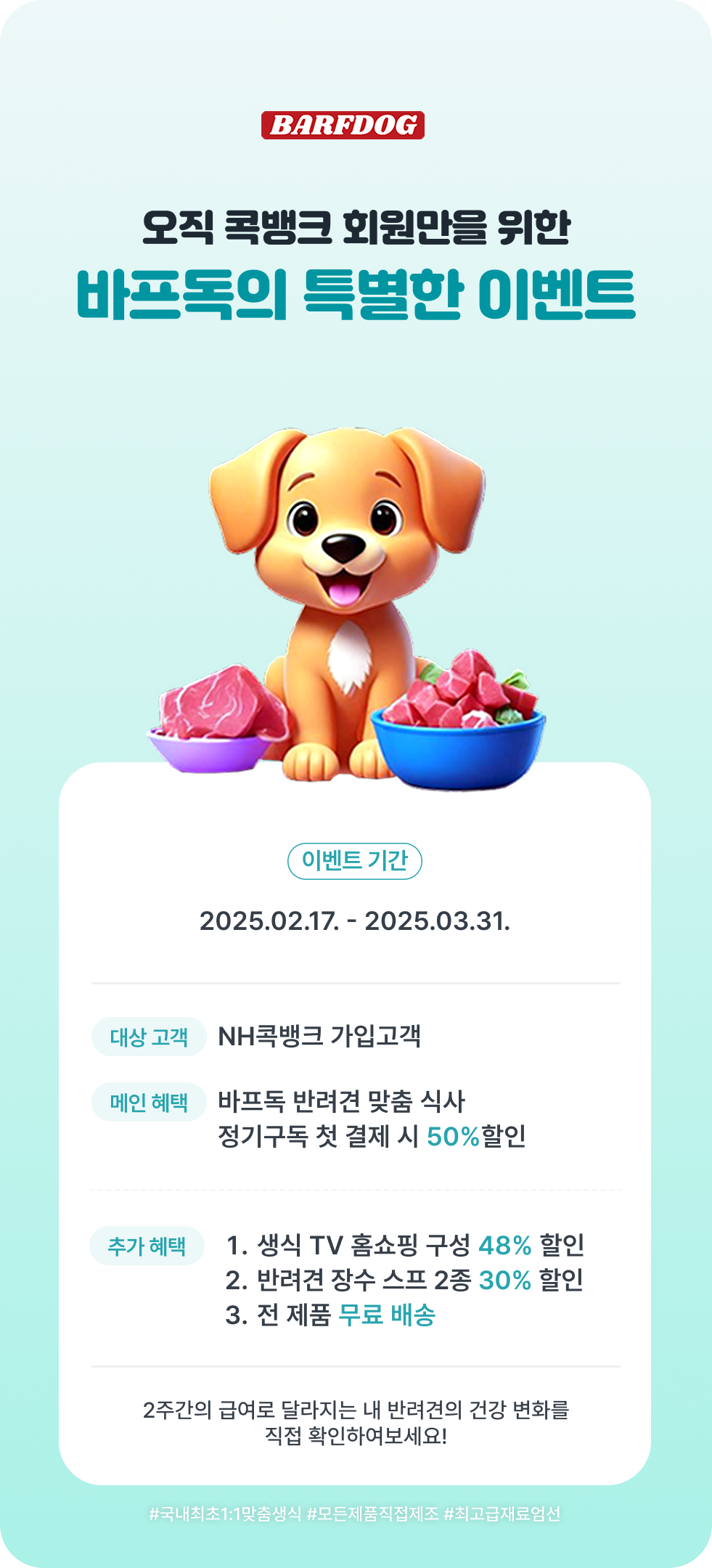 현재 NH콕뱅크의 콕쇼핑을 통해 바프독 생식을 구매하시면,