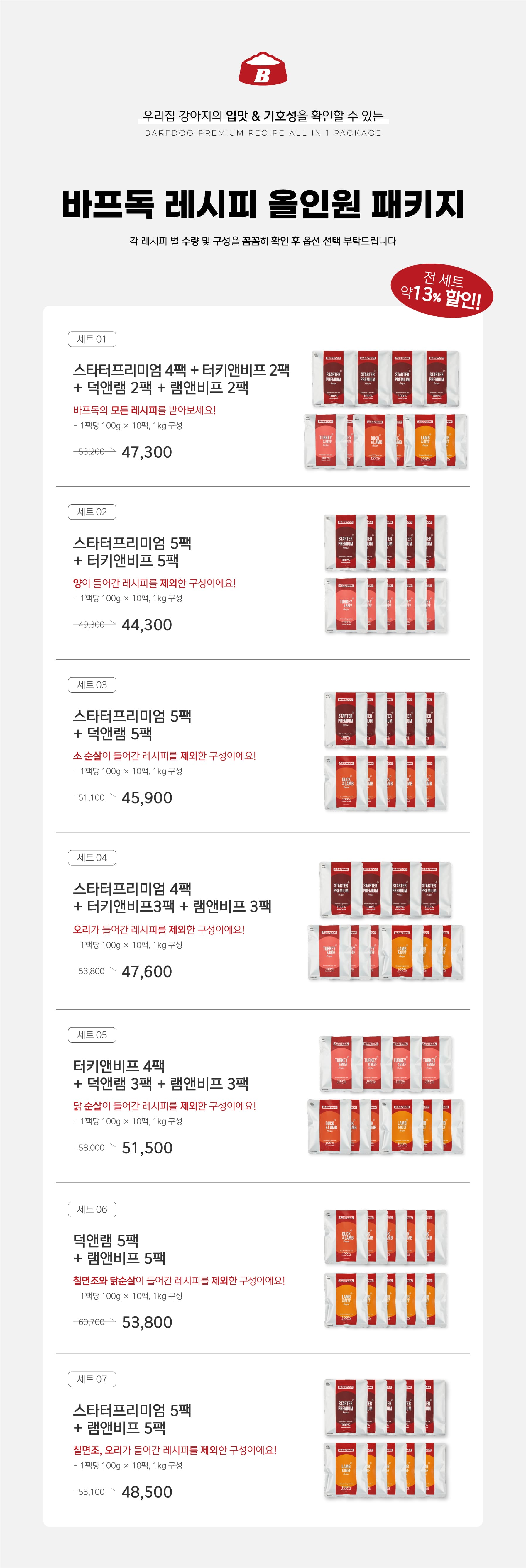 상품 Tip!다양한 레시피를 골고루 먹이고 싶은데, 단품으로는 구성이 다양하지 못하다구요? 그럼 올인원패키지를 이용하여 보세요. 4가지 레시피 중에서도 골고루 원하는 레시피를 선택할 수 있습니다:)