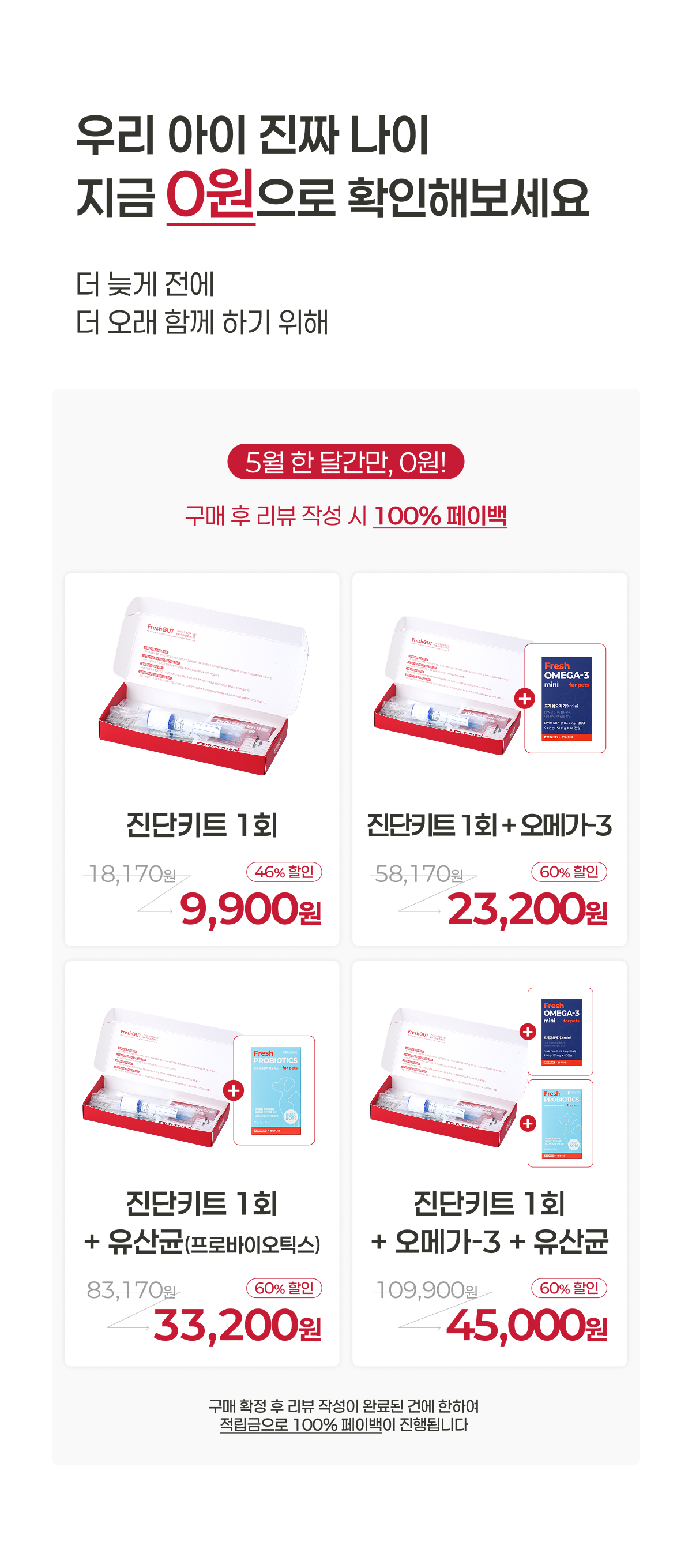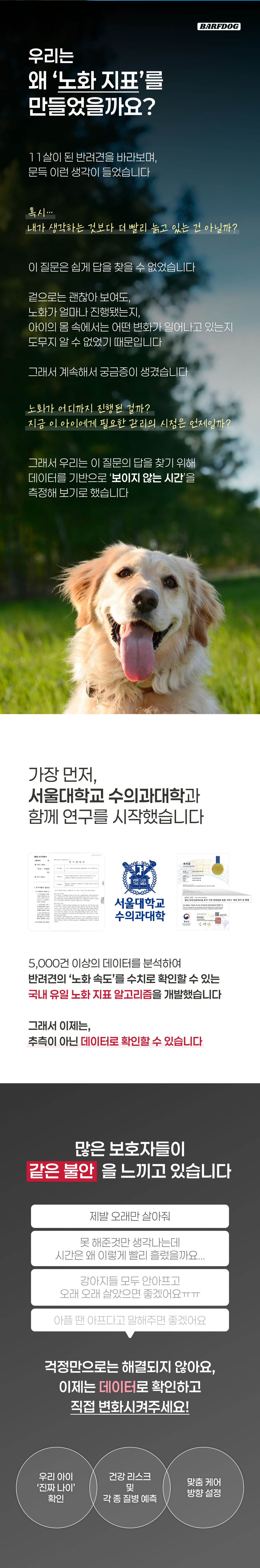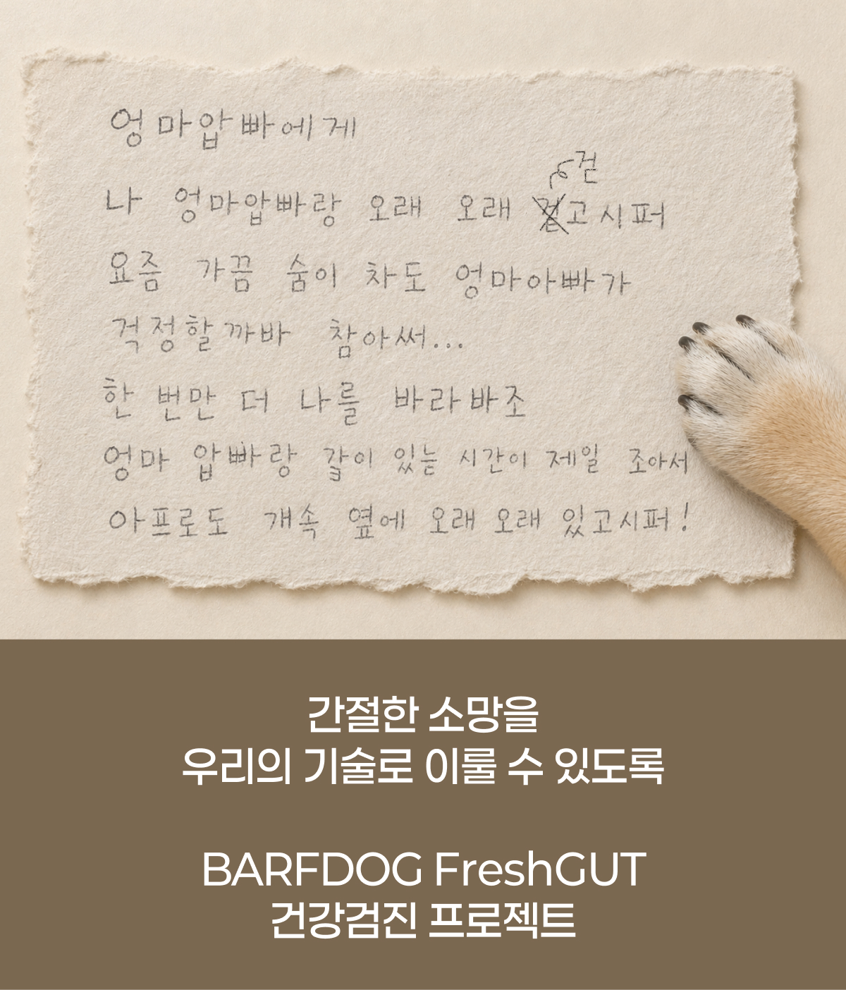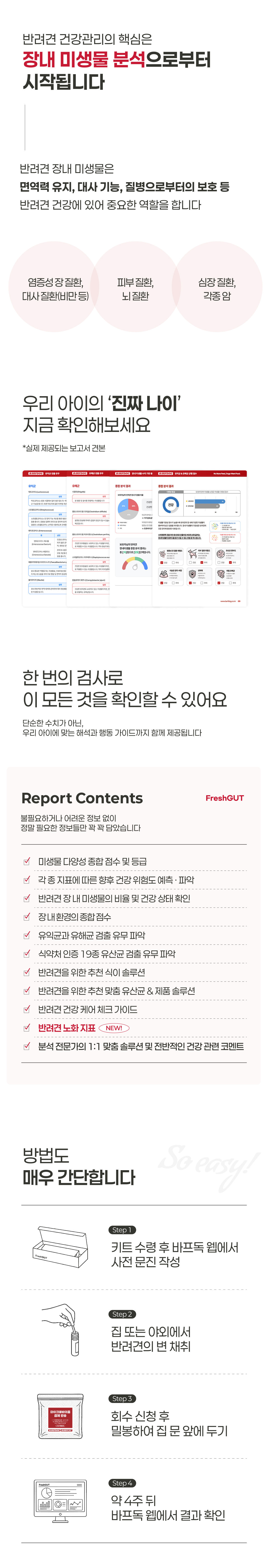 상품 Tip!반려견의 노화 지표가 추가 되었어요! 장 건강 및 질환 예측을 받아볼 수 있는 바프독의 FreshGUT 반려견 장내미생물 분석키트 제품을 만나보세요!
