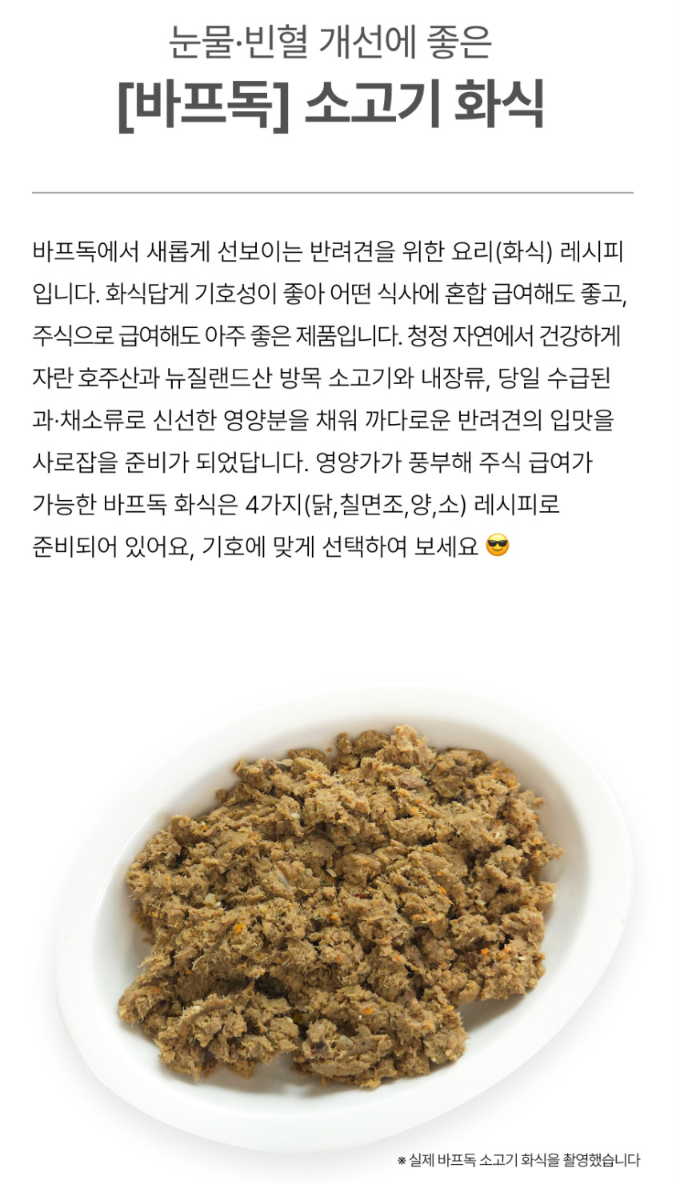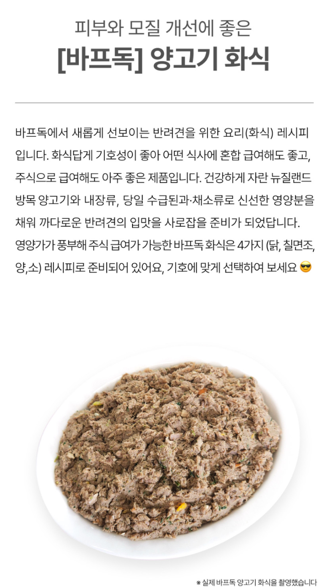 소·양·닭 프리미엄 화식과 바프화이트, 오메가3까지